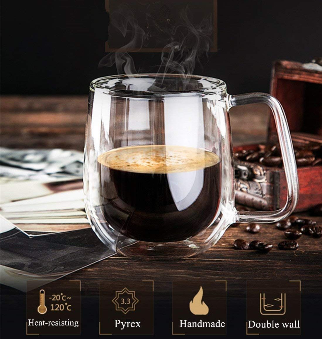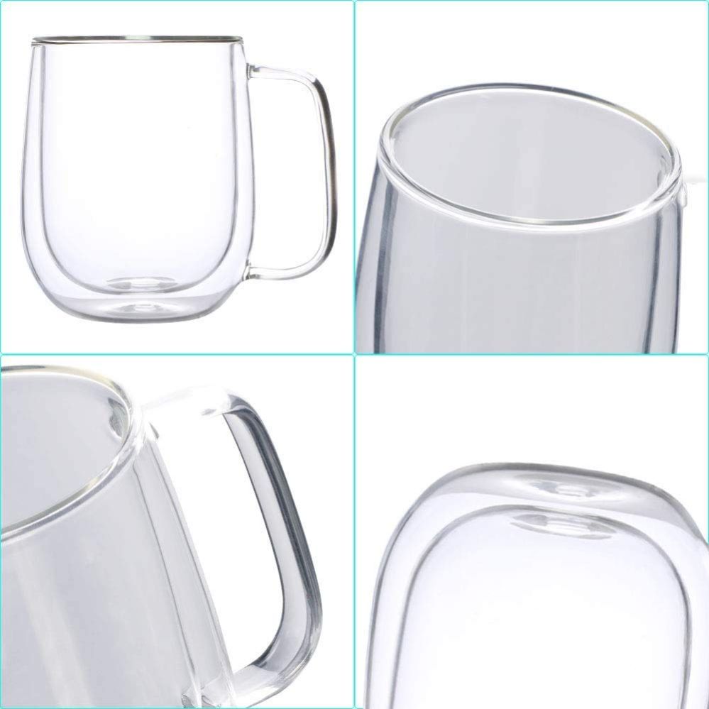 - DOUBLE WALLED DESIGN - The double layer glass mug set keep hotter and colder than the normal single walled glass and ceramic mugs. Cool to touch, without burning fingers