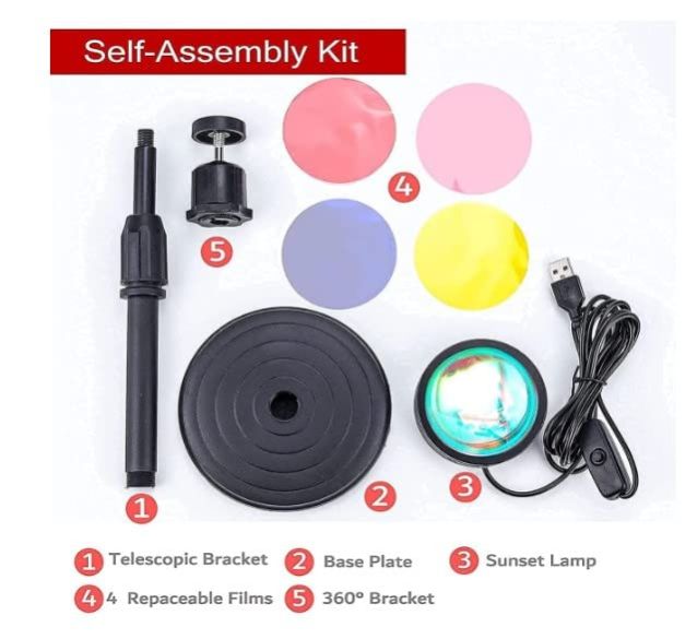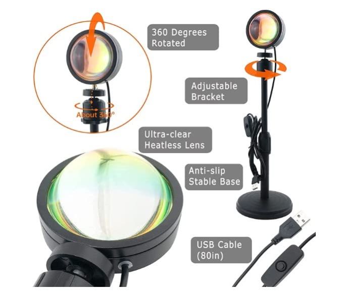 Sunset Projection Lamp LED Night Lights | 360° Rotation Stand || Adjustable Height Plastic, pack of 1