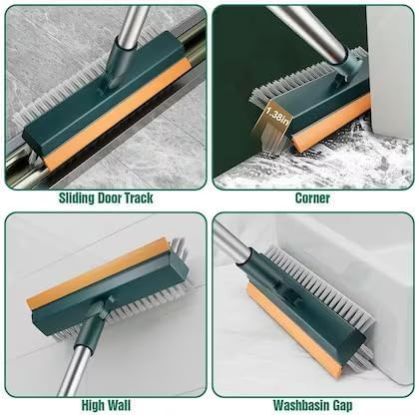 - Bathroom Cleaning Brush with Wiper 3 in 1 Tiles Cleaning Brush Floor Scrub Bathroom Brush with Long Handle 120° Rotate Bathroom Floor Cleaning Brush Home Kitchen Bathroom Cleaning Accessories
