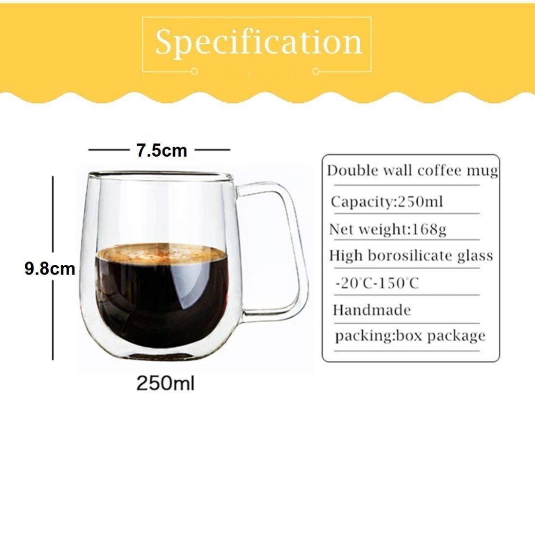 - DOUBLE WALLED DESIGN - The double layer glass mug set keep hotter and colder than the normal single walled glass and ceramic mugs. Cool to touch, without burning fingers