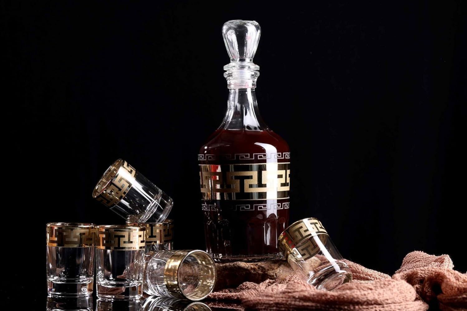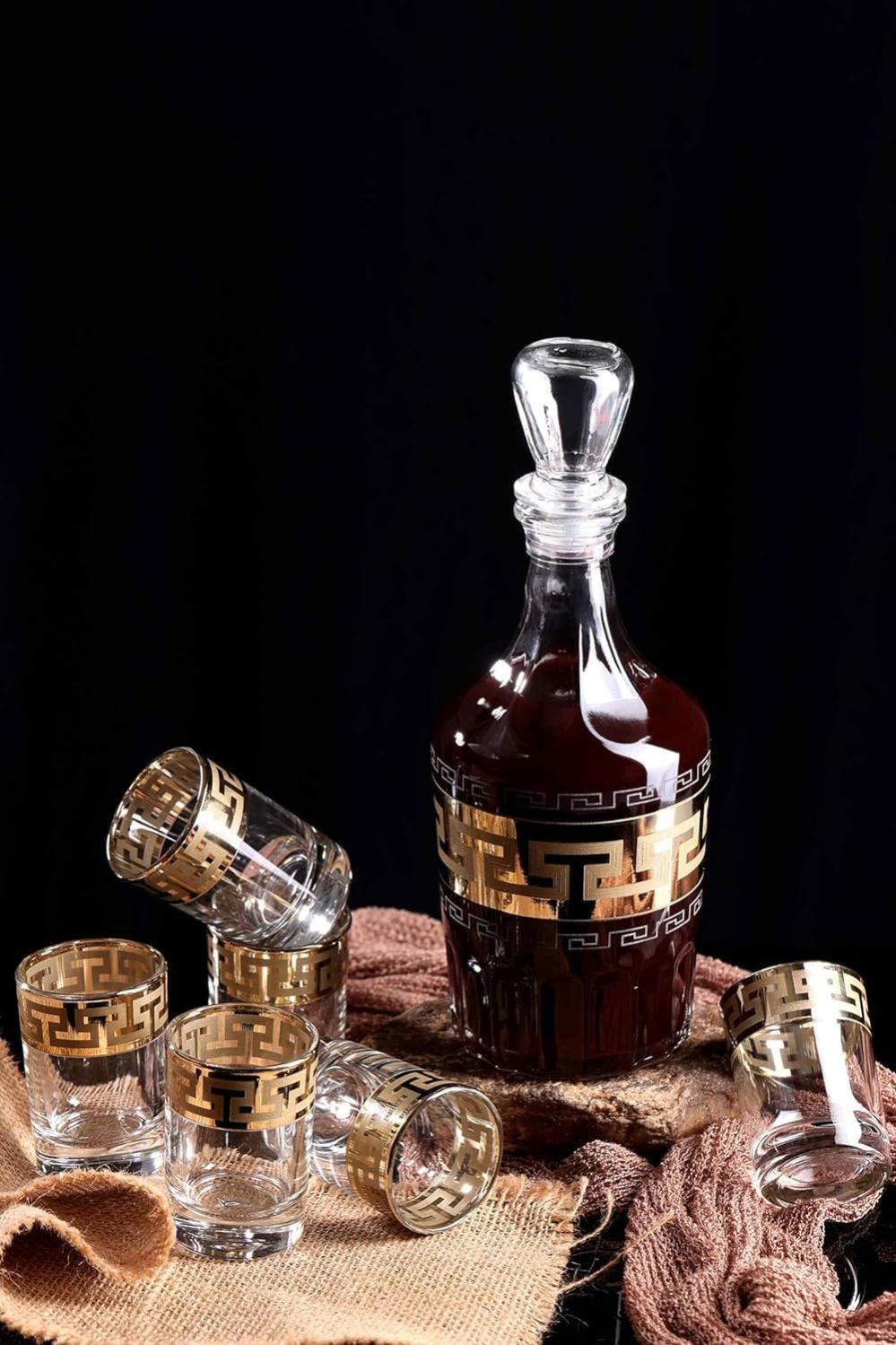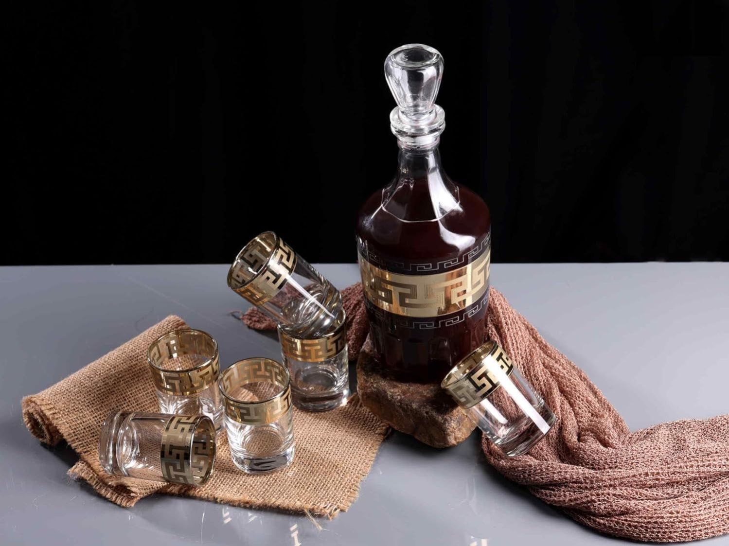 - This bold and heavy decanter sits comfortably in your hand for an easy pour. Each tumbler holds plenty of ice or rocks. Perfect for whiskey, spirits, and cordials