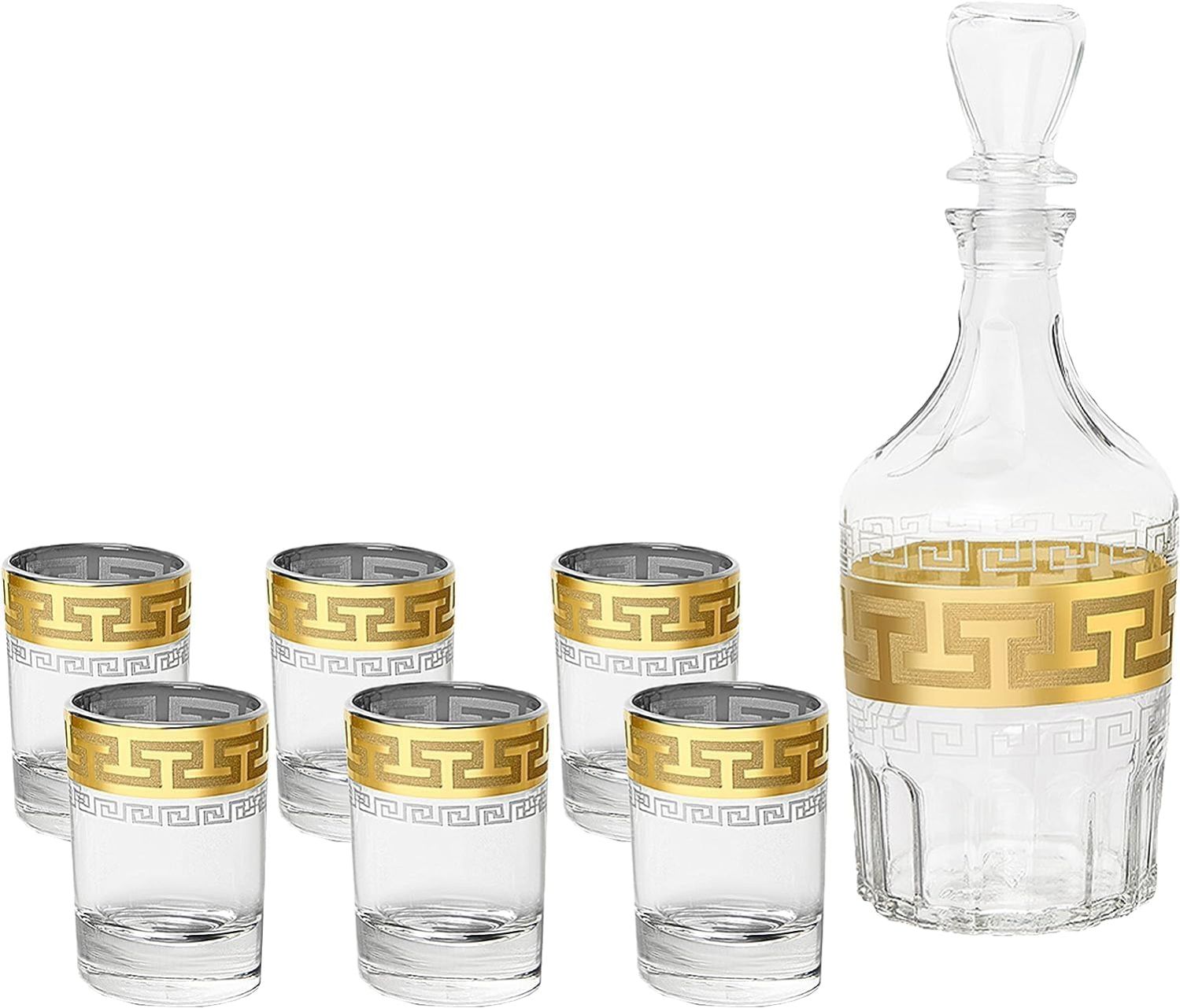 Royal Russian Style Shot Set | 7 Pcs Decenter and Glass Set | Party Glasses | Multi Purpose for Wine, Whiskey, Cold Drink and Cocktail Glasses | 6 Glass (60 ml) and 1 Decanter (500 ml)