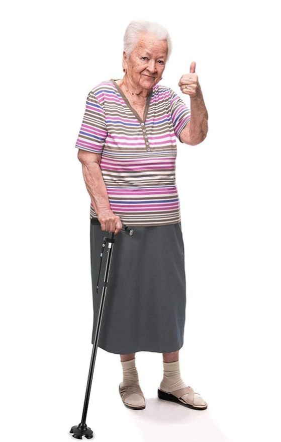 - Have perfect balance with the help of the Trusty Cane! Engineered with a pivoting head and extra-wide base to stay steady on uneven surfaces (like stairs) and stand on its own. Which means it will be right where you left it, and not lying on the floor.